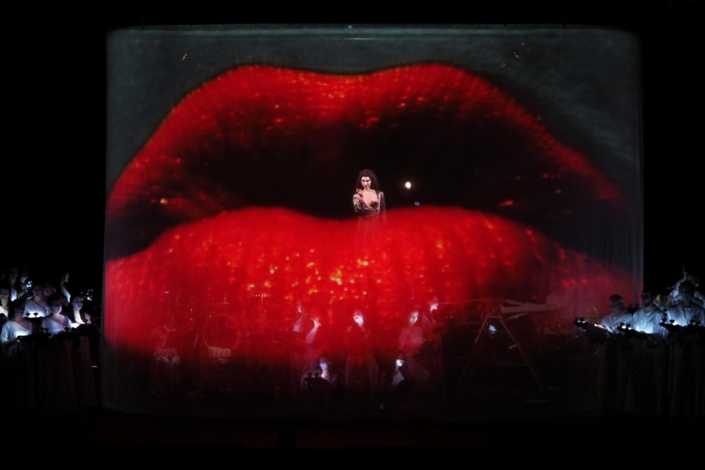 La puesta en escena incluye un cilindro escénico de 10 metros de diámetro que envuelve a la orquesta y sirve de pantalla para proyecciones en alta definición. El público asiste a un viaje cargado de simbolismo y sensaciones: una luna colosal, el deshielo, vendimias en directo, fuego, agua y vino, todo sincronizado con una música vibrante que celebra la vida, la naturaleza y el destino.